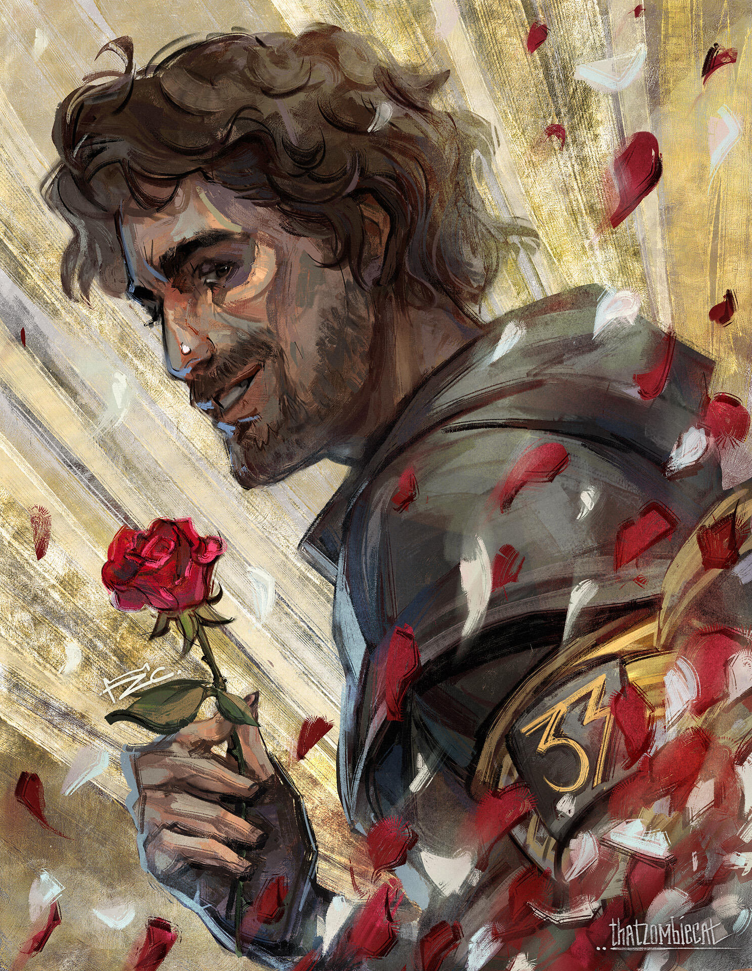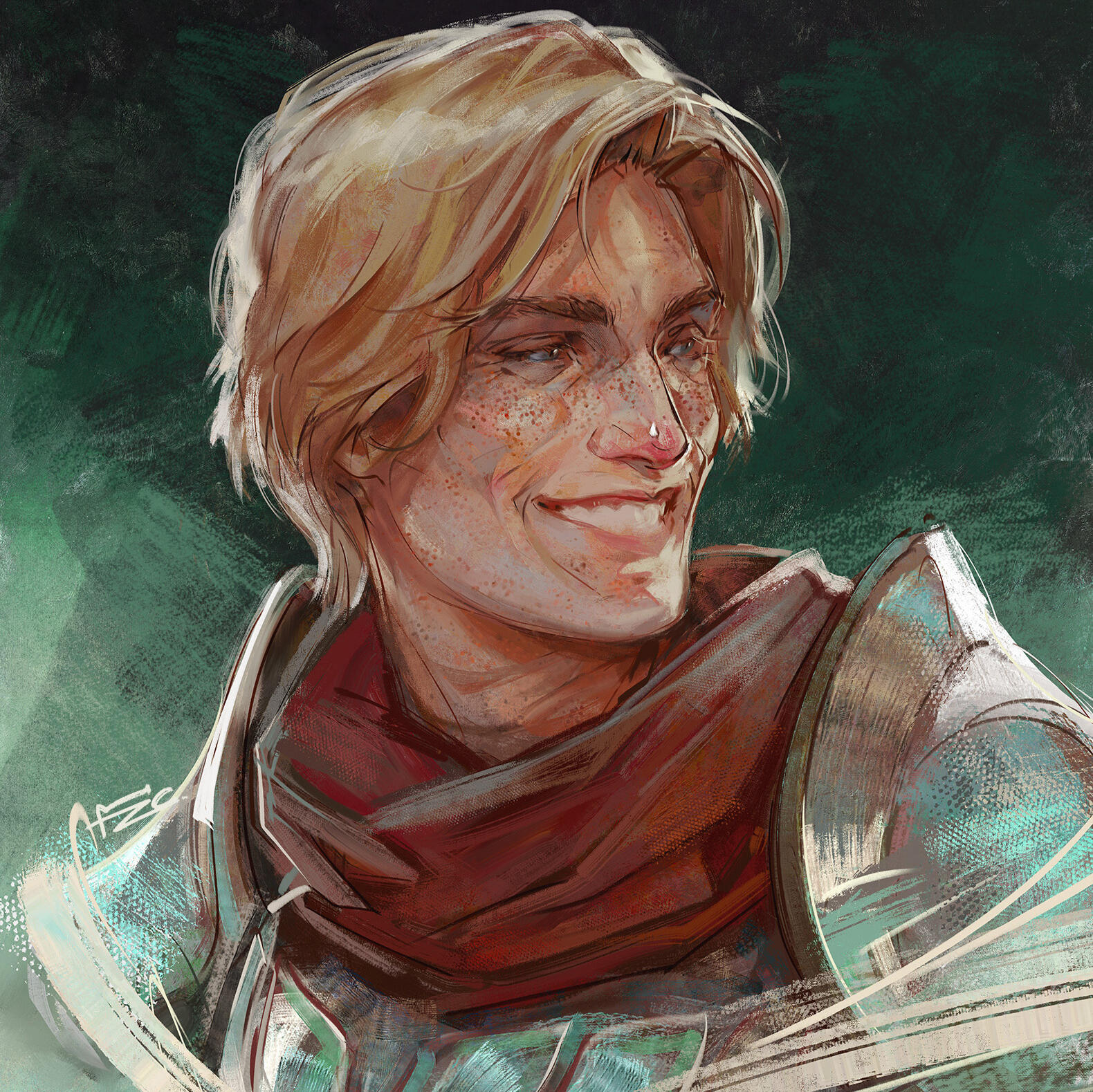 Single character, semi-static fully rendered portrait. More complex and realistic shading, expressive brushstrokes and distinct techniques, and even resembling a classic traditional oil painting.